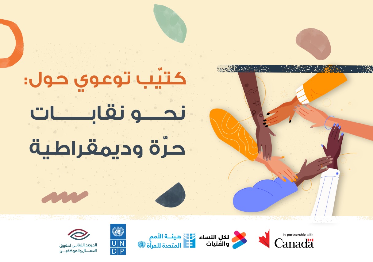 في إطار مشروع "القيادات النسائية في الفضاءات المدنية: كسر الحواجز نحو رؤية أكبر" نظم المرصد اللبناني لحقوق العمال والموظفين 16 ورشة عمل تدريبية في بيروت وجبل لبنان والبقاع والشمال شاركت فيها 40 قيادية نسائية ناشئة من النقابات الأربع الشريكة وهم نقابة المعلمين والمعلمات في لبنان ونقابة موظفي وموظفات الصندوق الوطني للضمان الاجتماعي واللجنة التأسيسية لنقابة العاملين والعاملات في المستشفيات الحكومية واللجنة التأسيسية لنقابة العاملين والعاملات في مستشفى رفيق الحريري الجامعي الحكومي ونقابة الإختصاصيين بالعمل الإجتماعي. قدم ورش العمل الخبير النقابي والقانوني عصام ريدان والخبيرة الجندرية لونا سمور حيث تم تدريب المشاركات على واقع الحركة النقابية والعمالية وآفاق تطويرها، مفاهيم العمل والتنظيم النقابي في القانون والمعايير الدولية، الحقوق والواجبات في العمل، مبادئ العمل اللائق، الحوار الاجتماعي وهيكل التمثيل الثلاثي، إدارة الاجتماعات النقابية والتحركات النقابية الضاغطة، المفاوضة الجماعية وديناميكية التفاوض، المخاطر الاجتماعية والحق في الحماية منها، التمييز وعدم المساواة تجاه النساء إضافة إلى معيقات مشاركة المرأة في القيادة والتحرك الضاغط. وهدفت هذه الورش إلى تمكين القيادات النسائية الناشئة من تولي مناصب قيادية داخل الهيئات واللجان المنتخبة بما في ذلك المجلس التنفيذي ومجالس المندوبين يُنفَّذ مشروع "القيادات النسائية في الفضاءات المدنية: كسر الحواجز نحو رؤية أكبر" من قبل المرصد اللبناني لحقوق العمال والموظفين، بالشراكة مع UN Women Lebanon و UNDP Lebanon، وبدعم من حكومة كندا. Within the framework of the project "Women Leaders in Civic Spaces: Breaking Barriers Towards a Grander Vision," the Lebanese Observatory for Workers & Employees Rights organized 16 training workshops in Beirut, Mount Lebanon, Bekaa, and the North. These workshops were attended by 40 emerging women leaders from the four partner unions: the Teachers’ Syndicate in Lebanon, the National Social Security Fund Employees’ Syndicate, the Founding Committee of the Governmental Hospitals Workers’ Syndicate, Founding Committee of the Workers’ Syndicate at Rafik Hariri University Hospital, and Social Workers’ Syndicate in Lebanon. The workshops were conducted by the labor and legal expert Issam Ridan and the gender expert Luna Samour, where participants were trained on the reality of the labor and union movement and its development prospects, concepts of work and union organization in law and international standards, rights and duties at work, principles of decent work, social dialogue and the structure of tripartite representation, union meeting management and pressure union actions, collective bargaining and negotiation dynamics, social risks and the right to protection from them, discrimination and inequality against women, in addition to obstacles facing women’s participation in leadership and pressure mobilization. These workshops aimed to empower emerging women leaders to assume leadership positions within elected bodies and committees, including the executive council and delegates’ councils. This project is implemented by the Lebanese Observatory for Workers & Employees Rights, in partnership with UN Women Lebanon and UNDP Lebanon, with support from the Government of Canada.